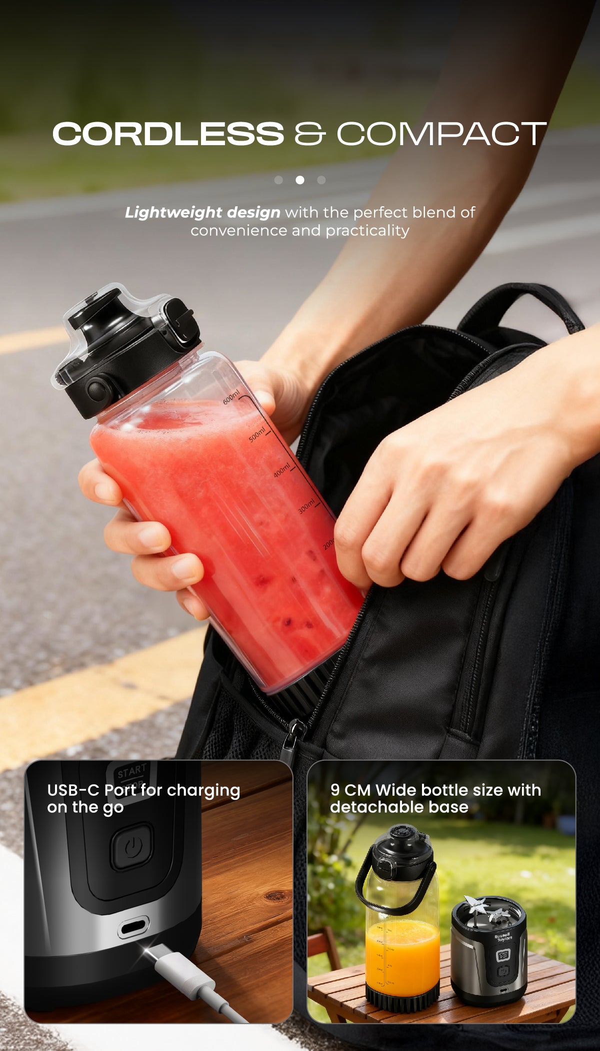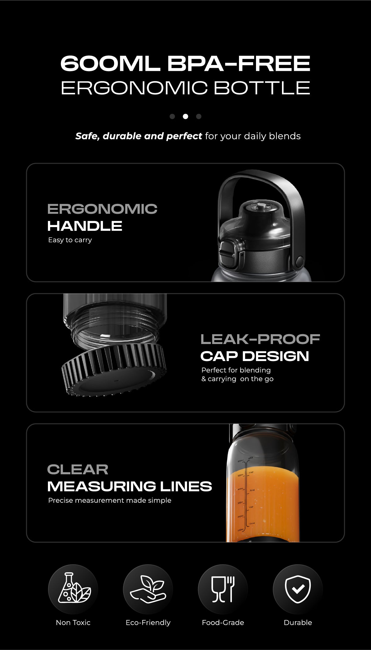 - ERGONOMIC 600ML BPA-FREE BOTTLE lets you blend and drink from the same container, offering safe, durable, and convenient everyday use