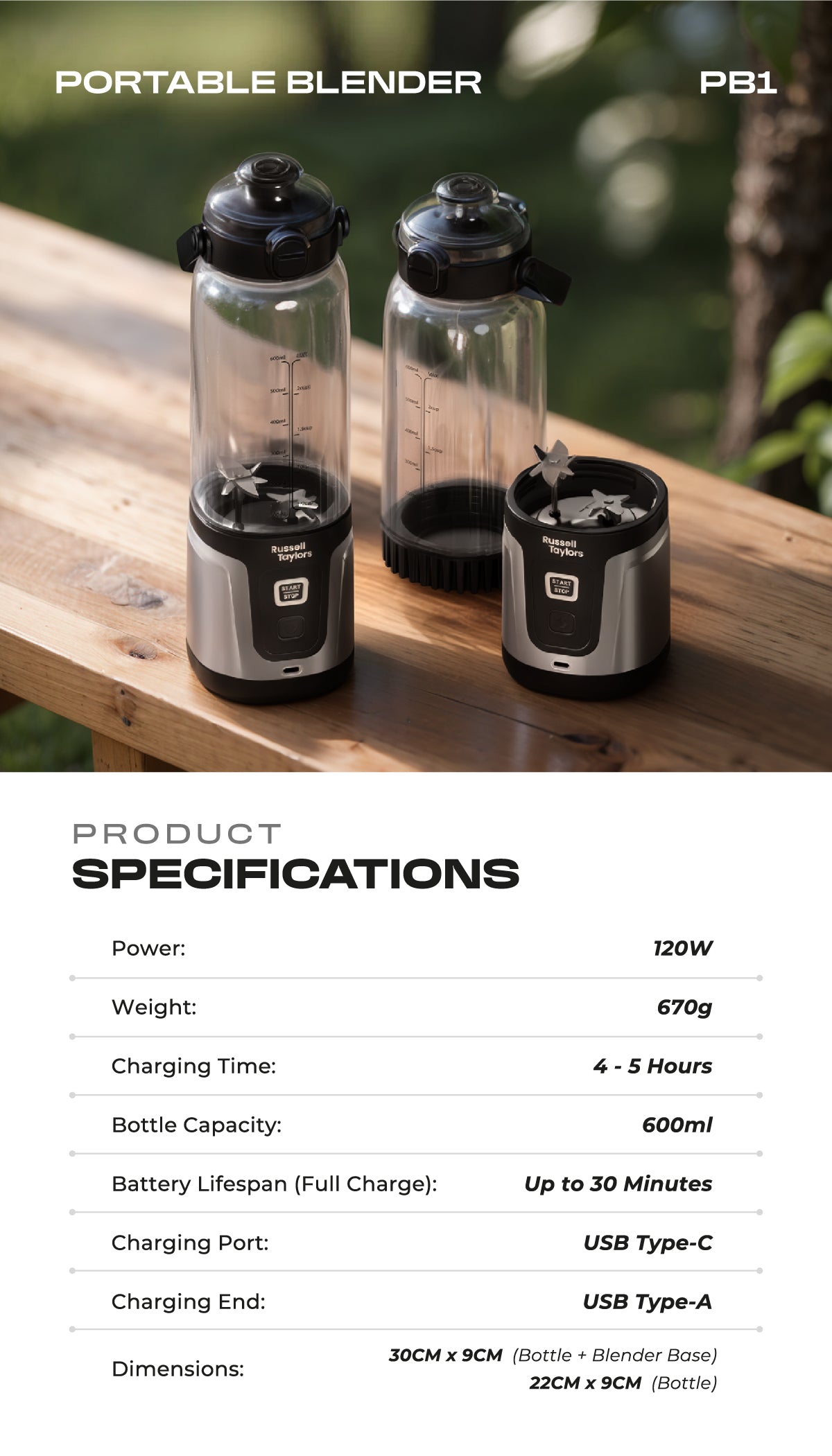 Rusell Taylors BLITZ Portable Blender (600ml) PB1