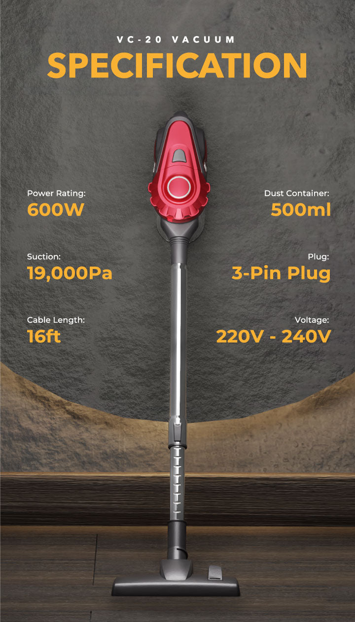- Powerful Technology - Constructed with engineered ABS featuring a powerful 600W motor and 19KPA suction power, all powered by the latest digital motor technology