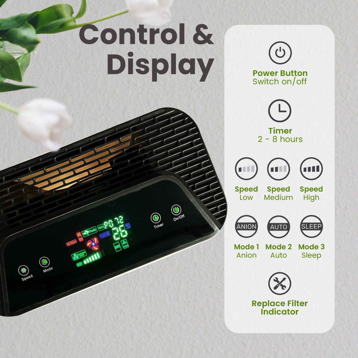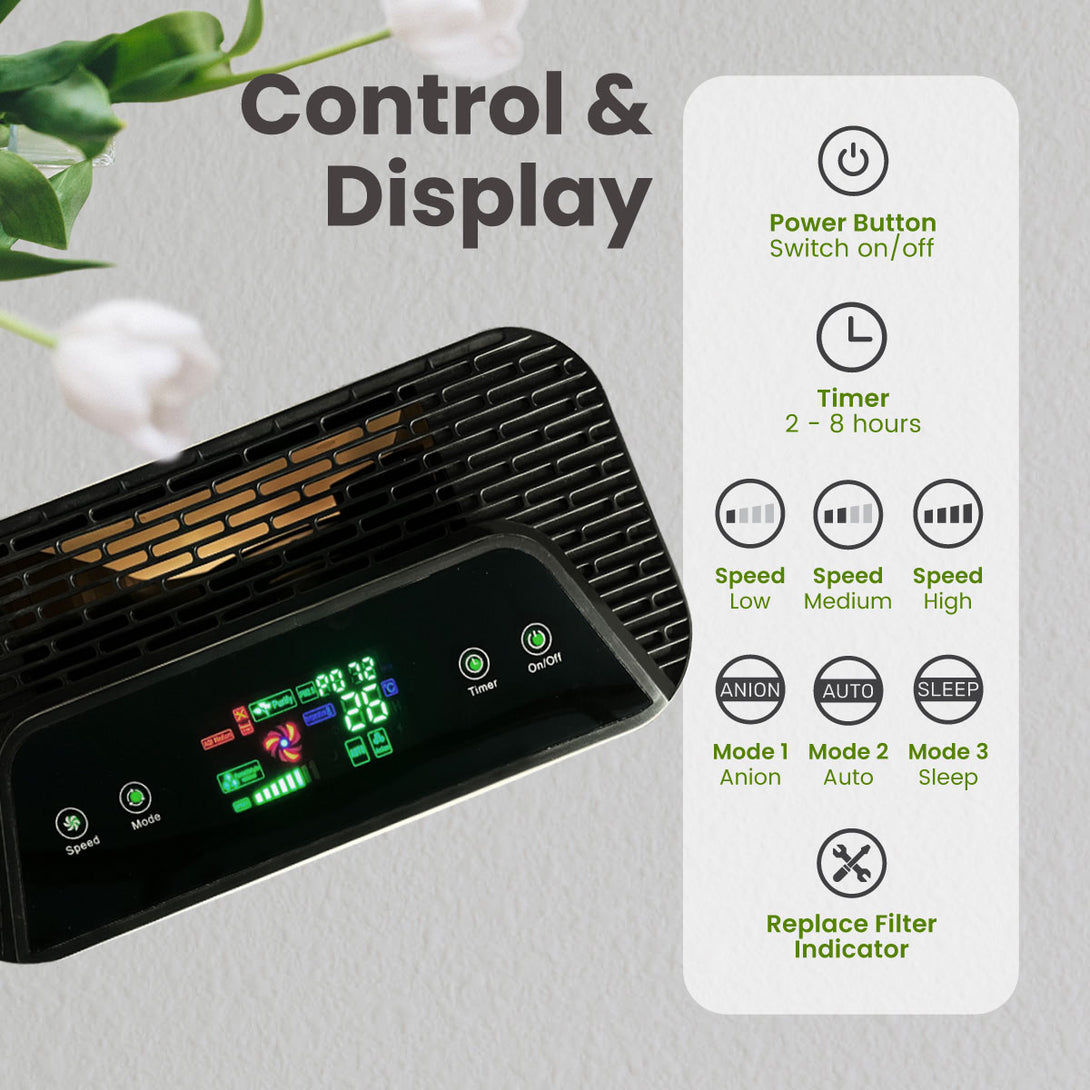 - Perfect for bedroom - The timer function allows you to set the air purifier to run for a specific period, while the silent mode operates at a low noise level.