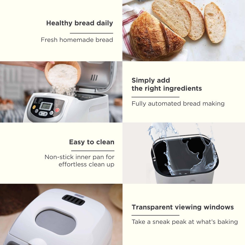 - User friendly: Add measured ingredients into the baking pan, snap it back and close the lid. Input the desired selections from the control panel, and it takes care of the rest – baking up to a 1-KG loaf to delicious perfection