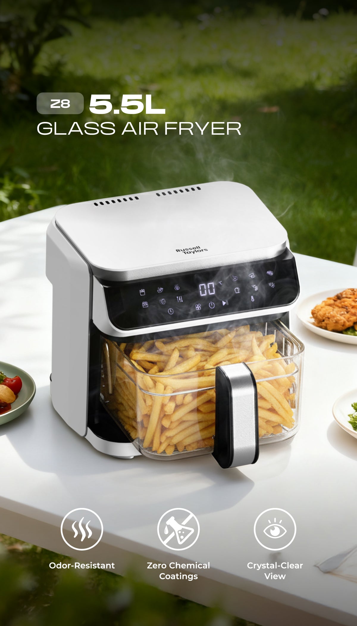 Russell Taylors CrystalVision360 Glass Air Fryer (5.5L) Z8