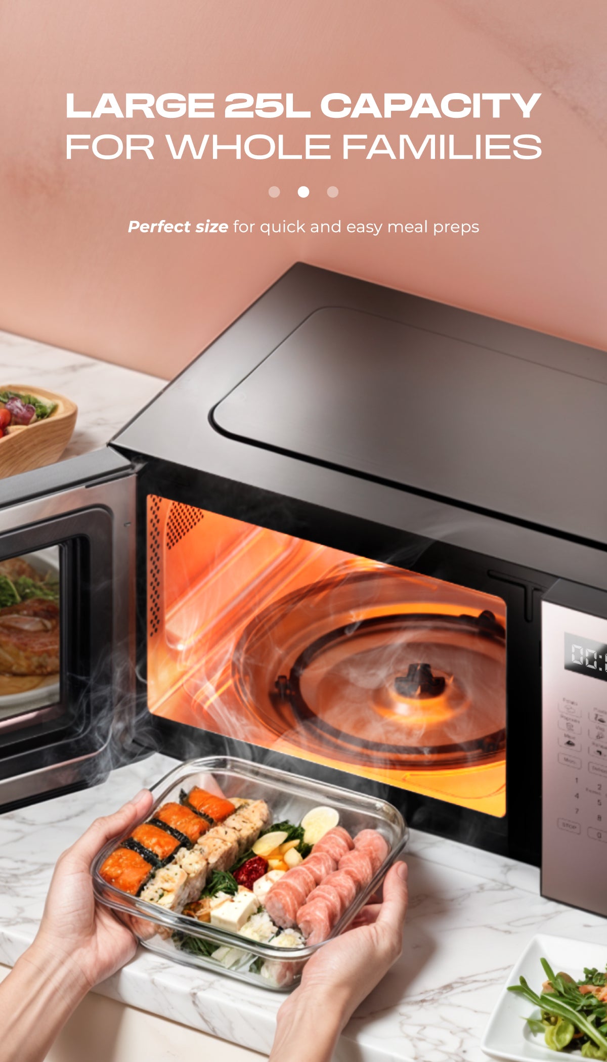 - Spacious 25L capacity providing ample space for family meals all in a compact, modern design