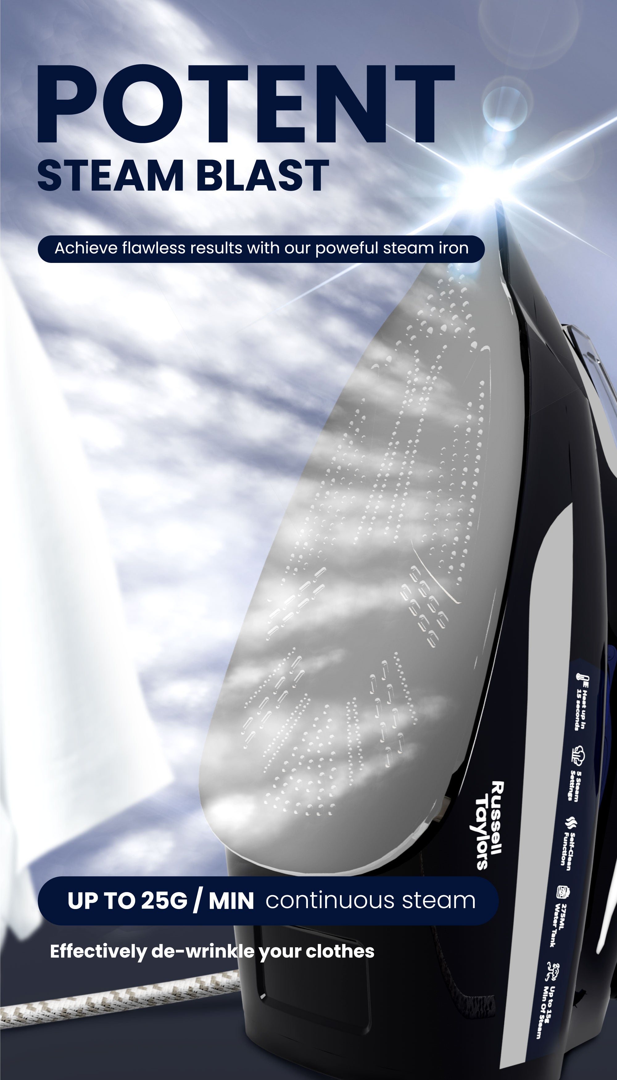 Russell Taylors Steam Iron with Non-Stick Ceramic Soleplate (2000W, 275ml) SI-20