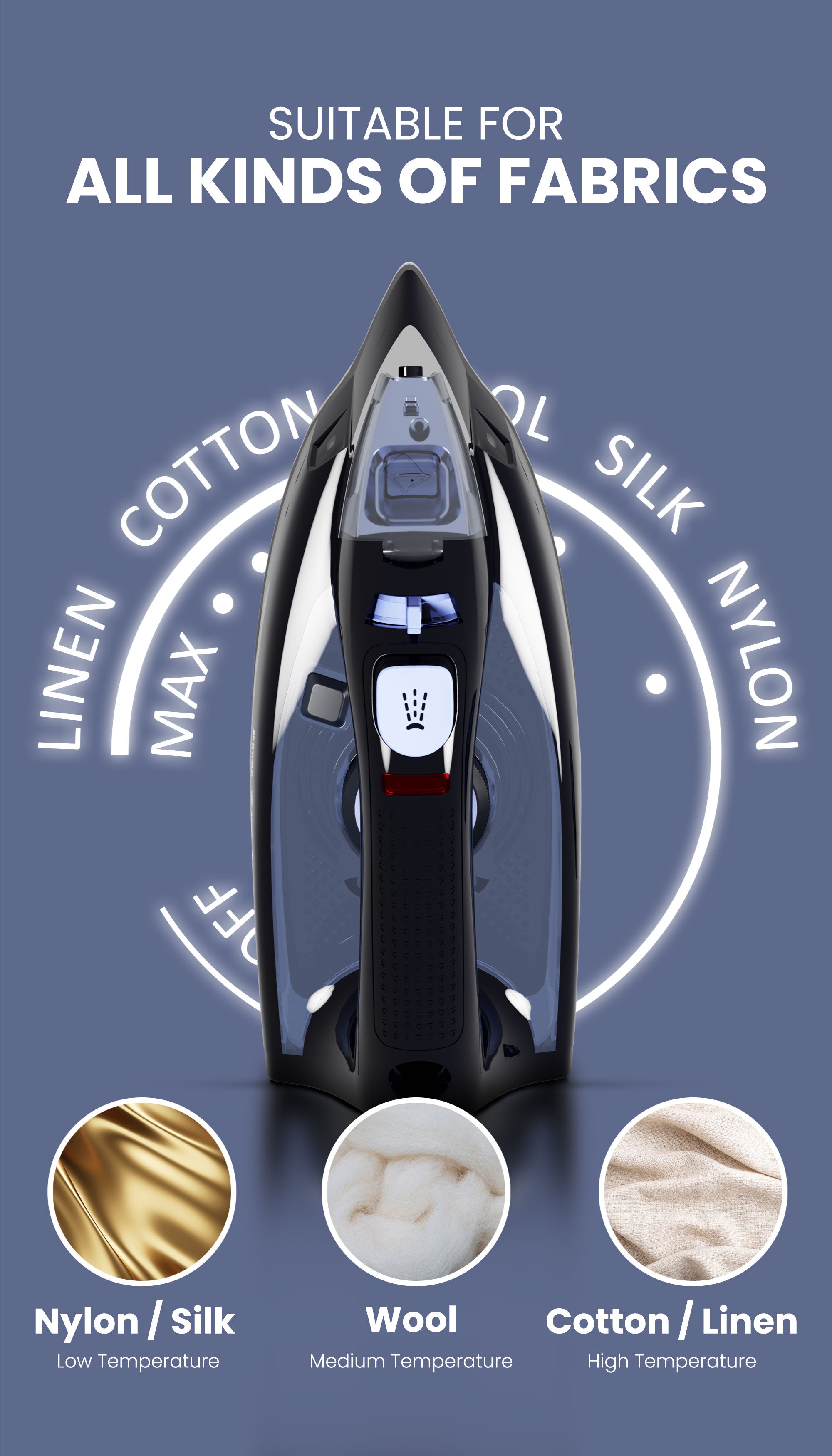 - ADJUSTABLE TEMPERATURE - For all the best fabrics (nylon, silk, wool, cotton, linen)