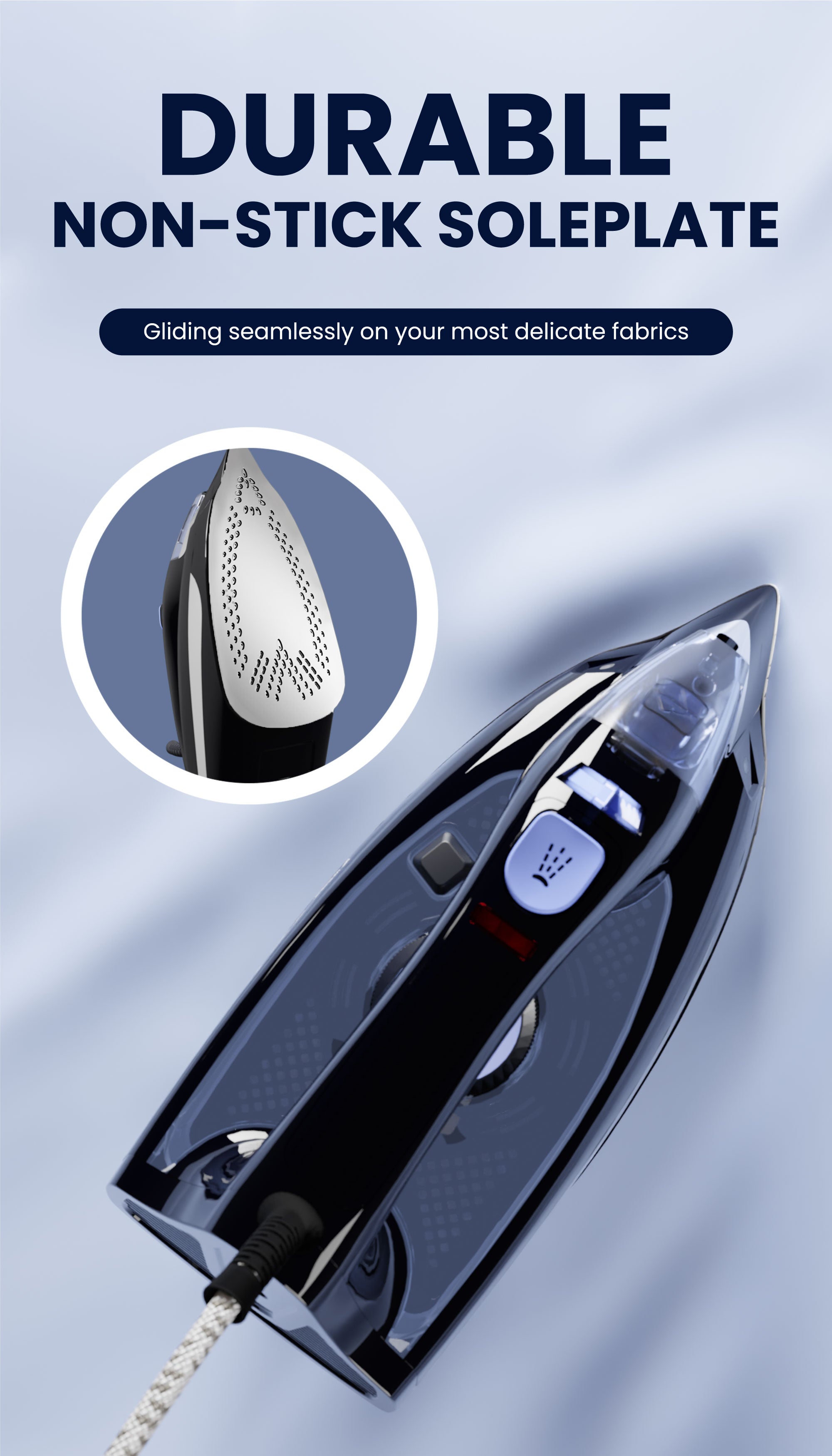 - Durable non-stick Soleplate - Gliding seamlessly on your most delicate fabrics