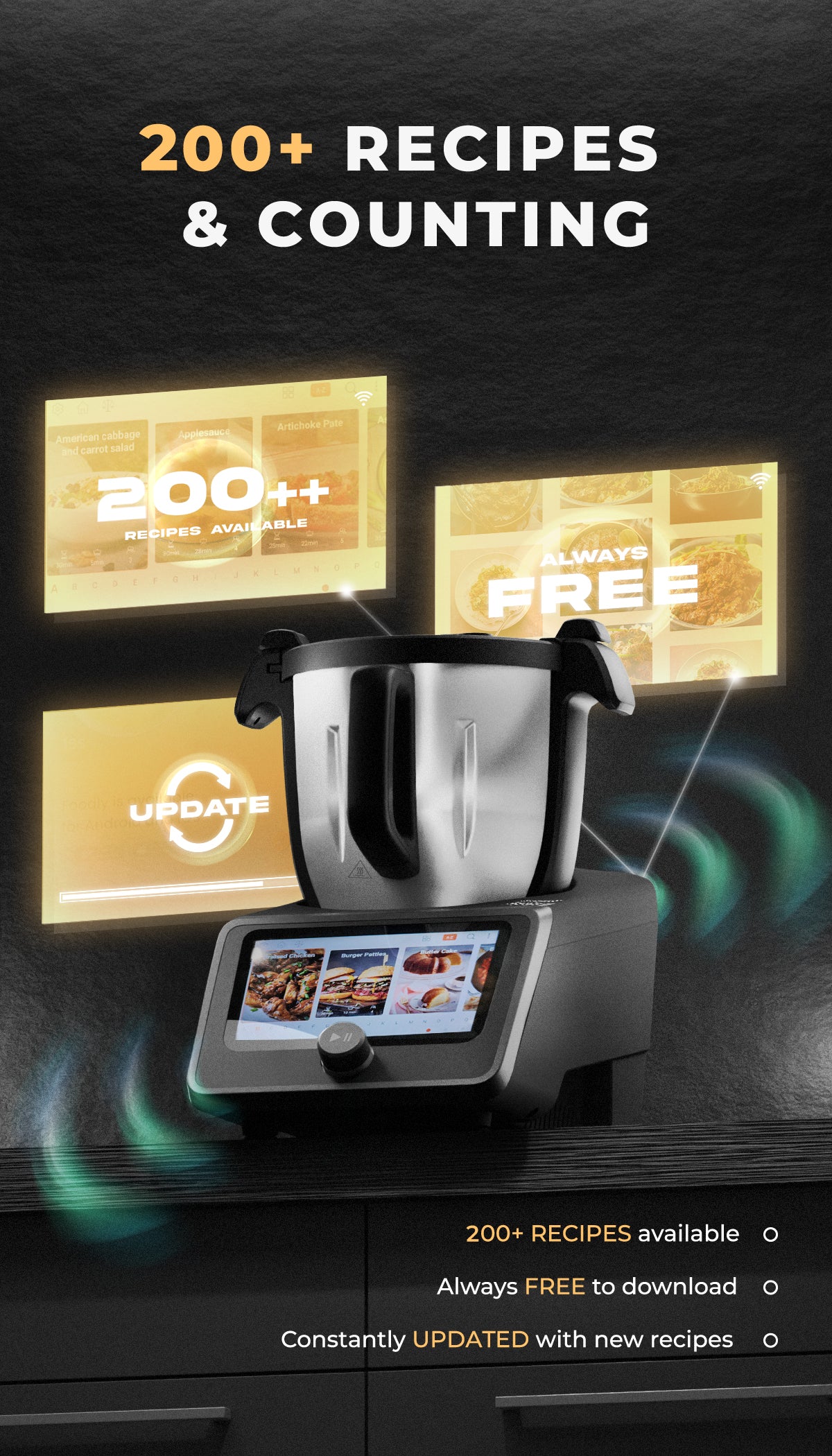 - Endless cooking inspirations with our exclusive recipes updated with the machine's software