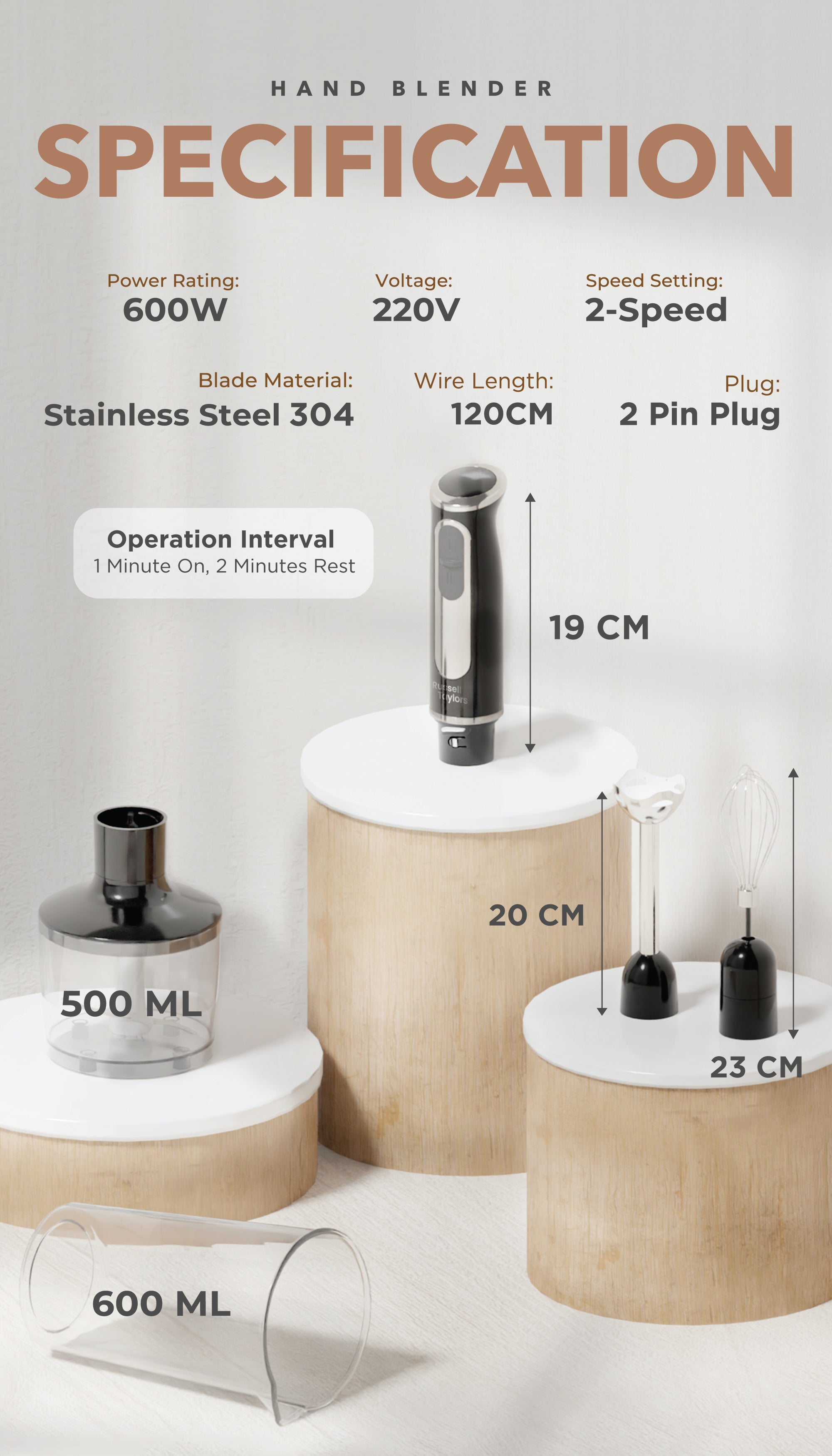 Russell Taylors Multifunction Hand Blender (600W) HB-6