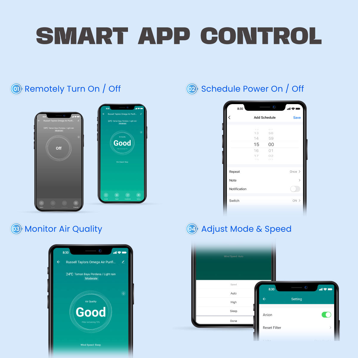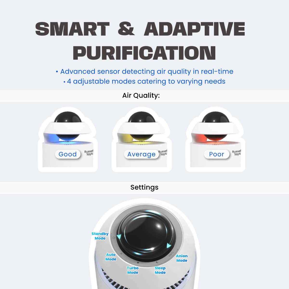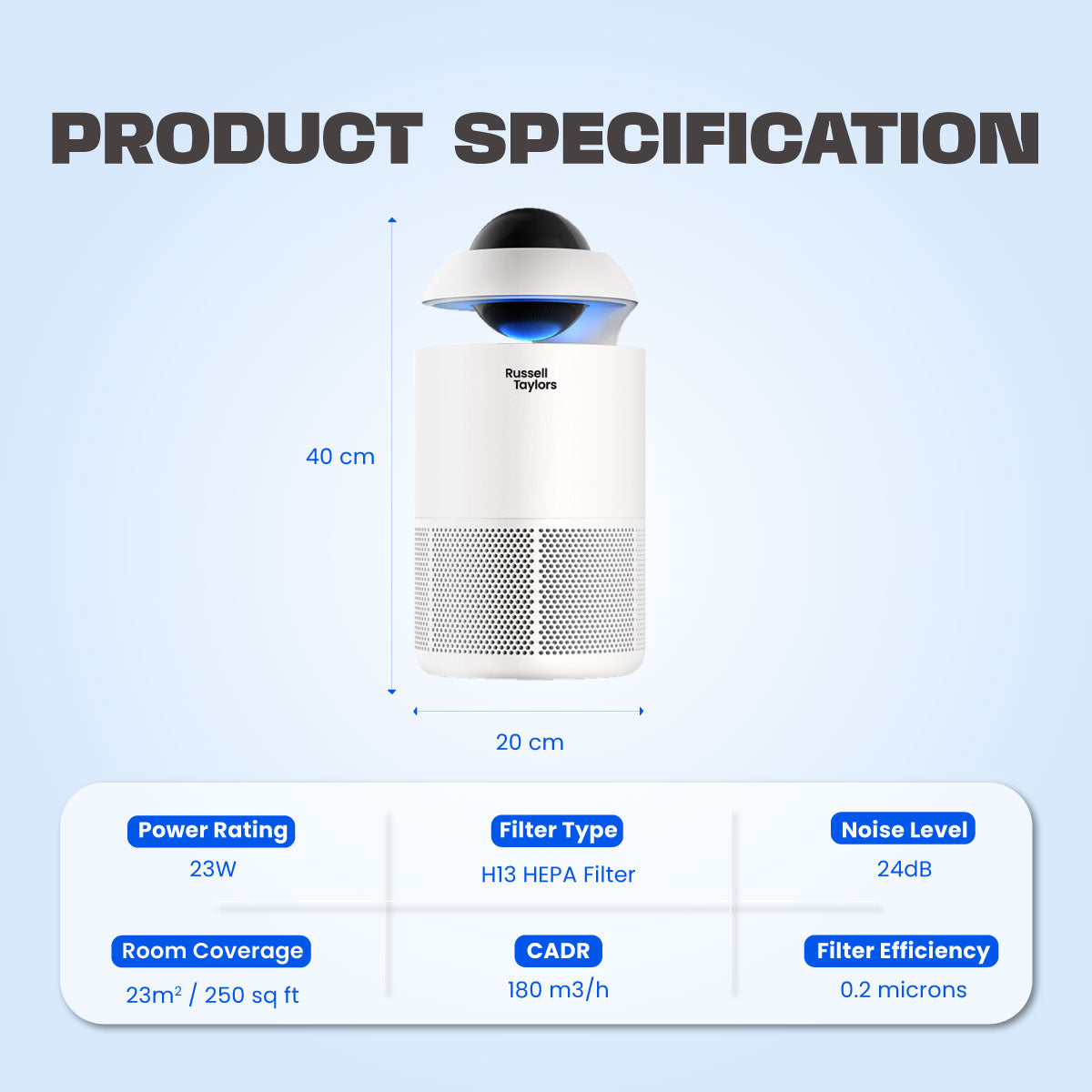 Russell Taylors Omega SMART Control Large Air Purifier HEPA-13 Filter Ionizer Activated Carbon (250sqft)