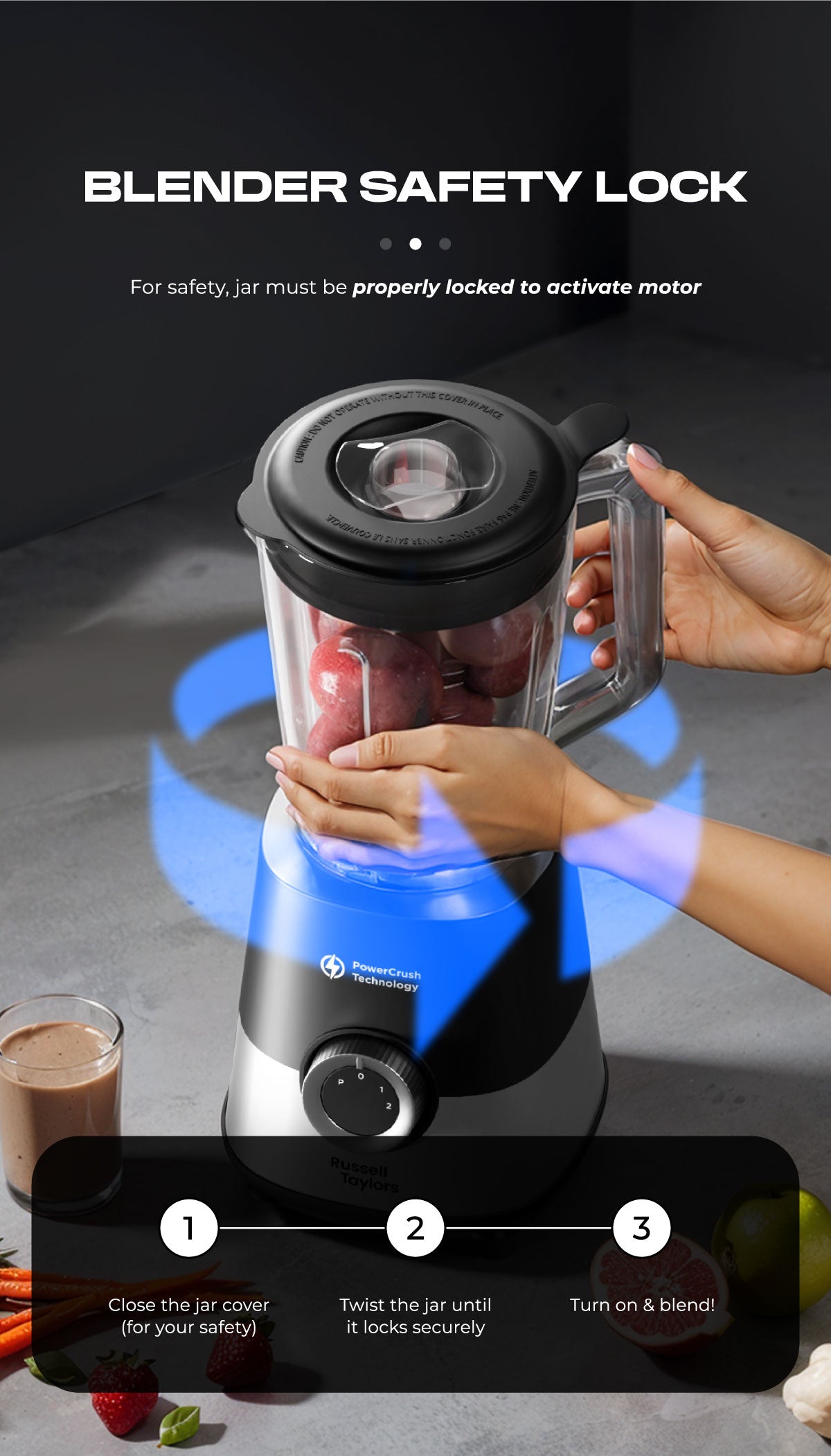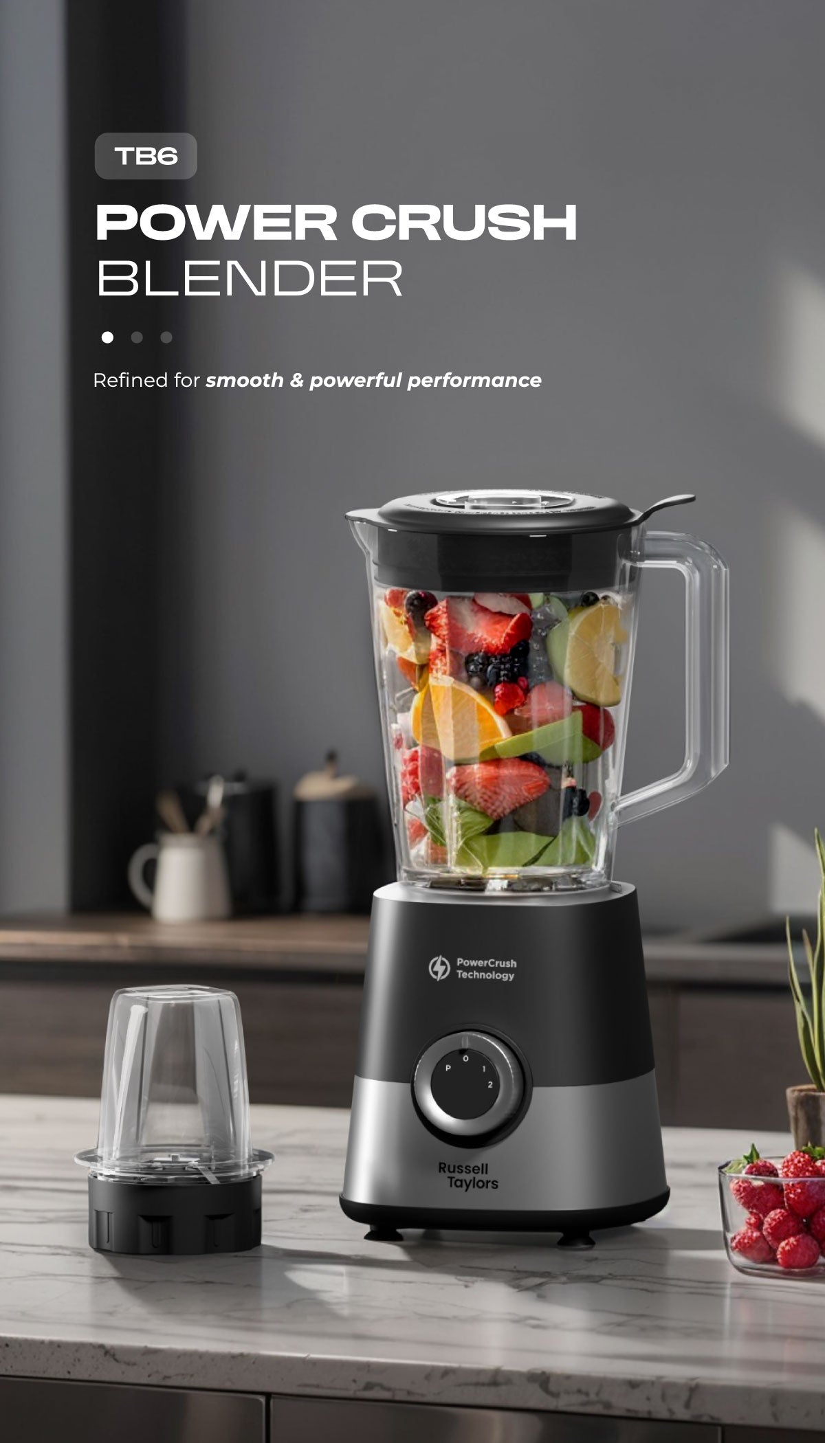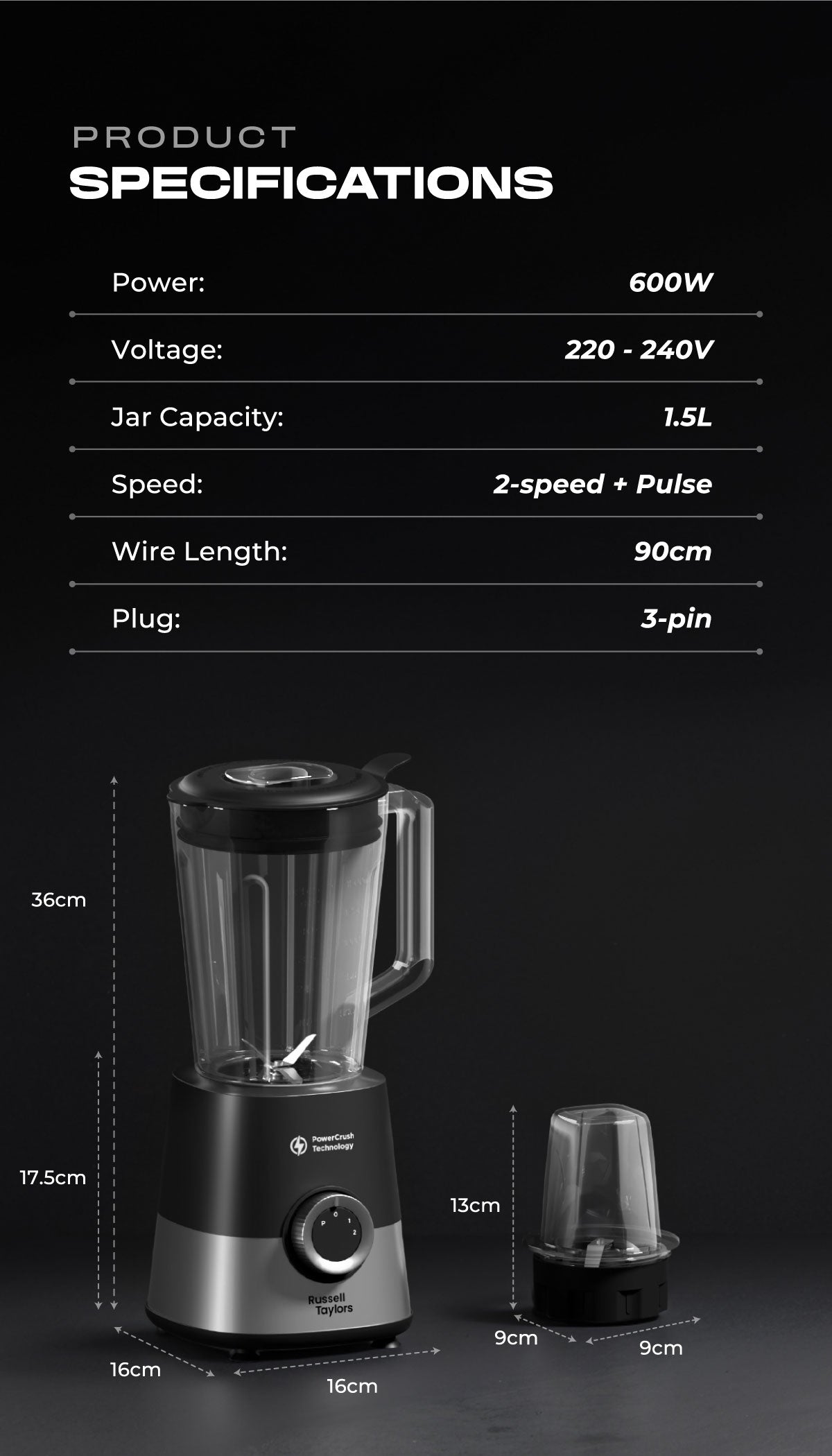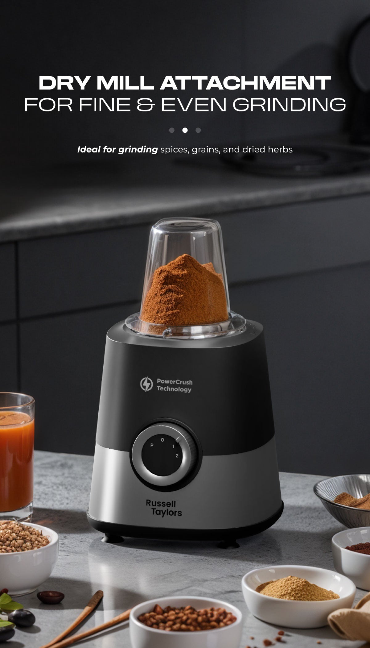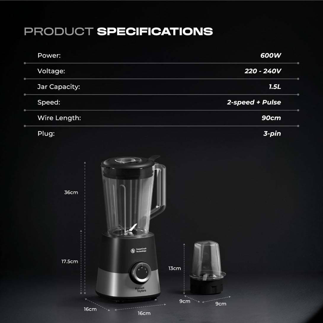 Russell Taylors Power Crush Blender with Grinder (1.5L, 600W) TB6