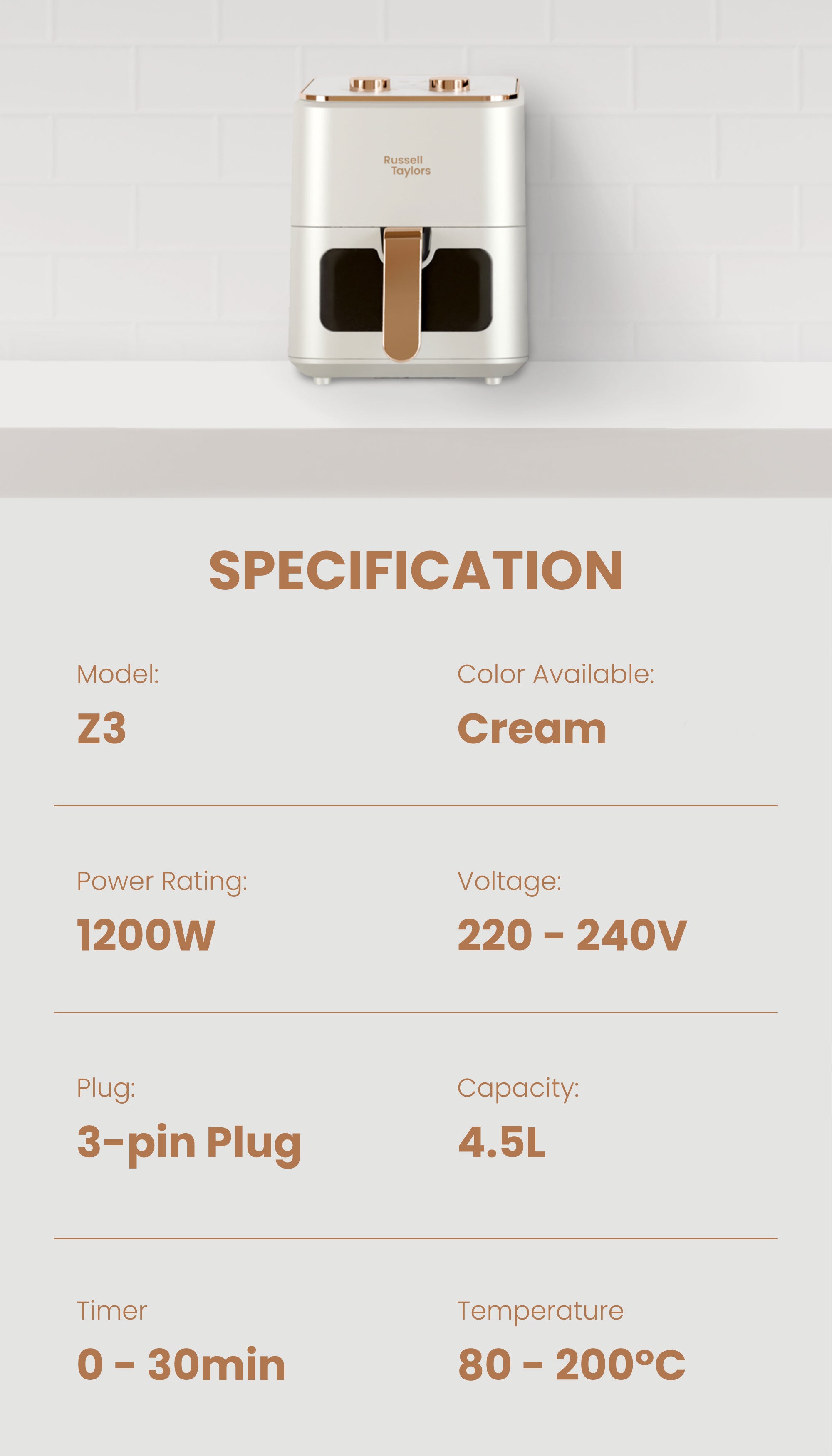 Russell Taylors Retro Series 3D Visible Window Air Fryer (4.5L) Z3