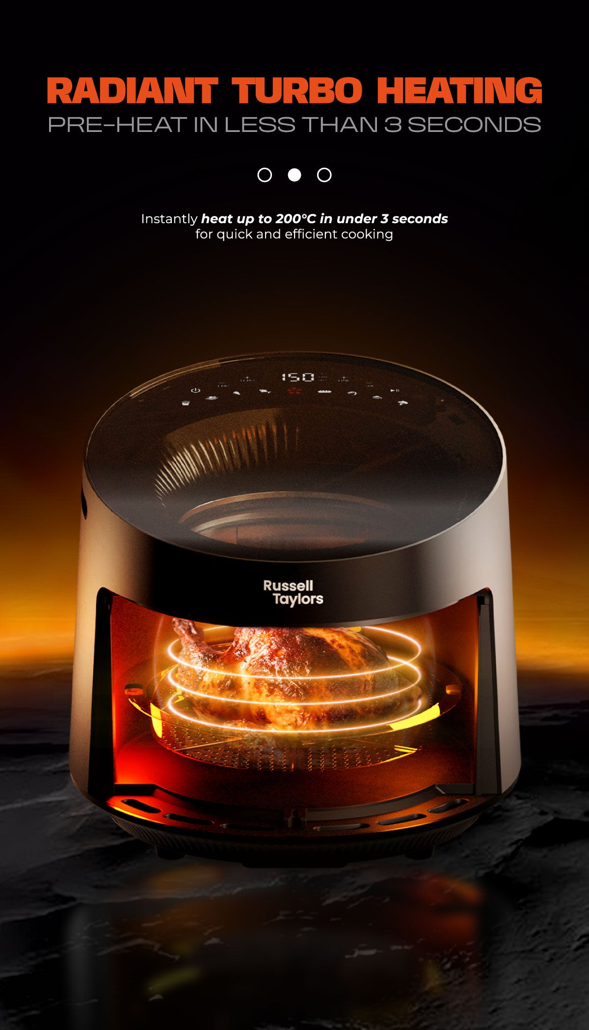 - Superheating technology: Heat up to 200 degrees in less than 3 seconds. Supercharged hot air & direct radiant light locks in moisture, speeds up cooking time & creates a hot, crisp finish