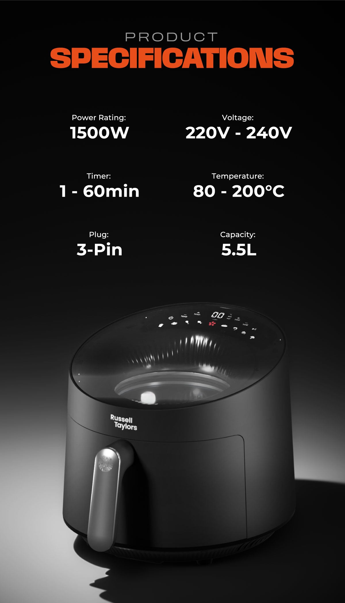 Russell Taylors Skylight View Bladeless Air Fryer (5.5L) Z10