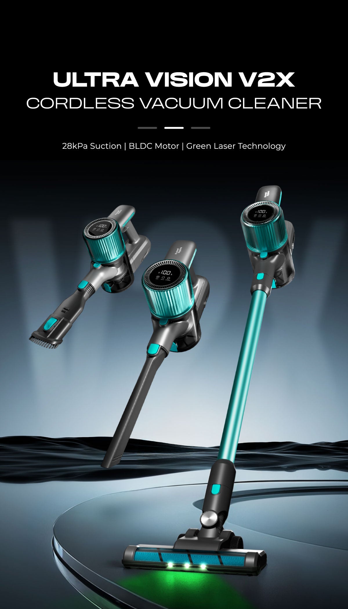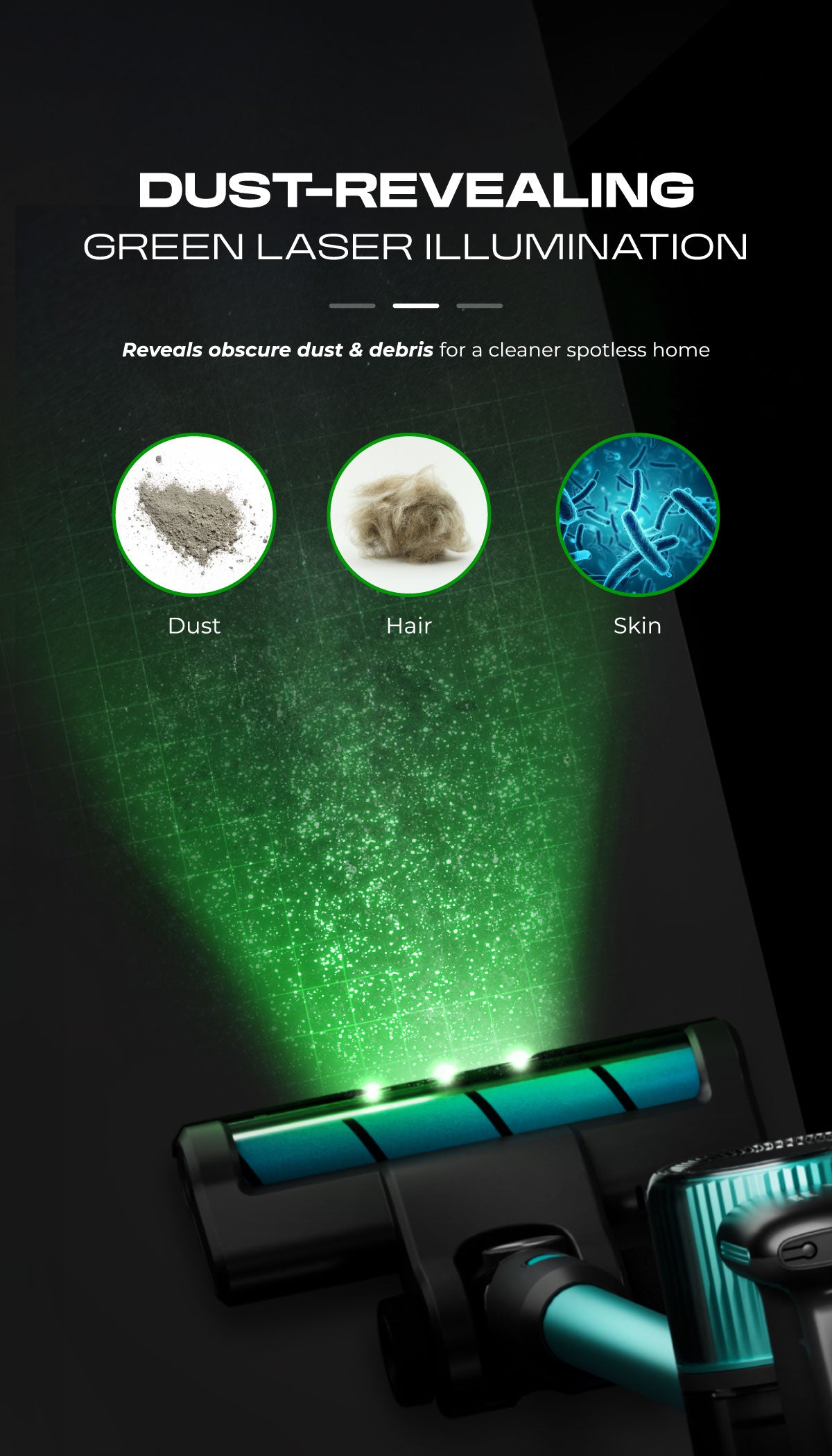 - GREEN LASER technology for enhanced dirt and debris visibility