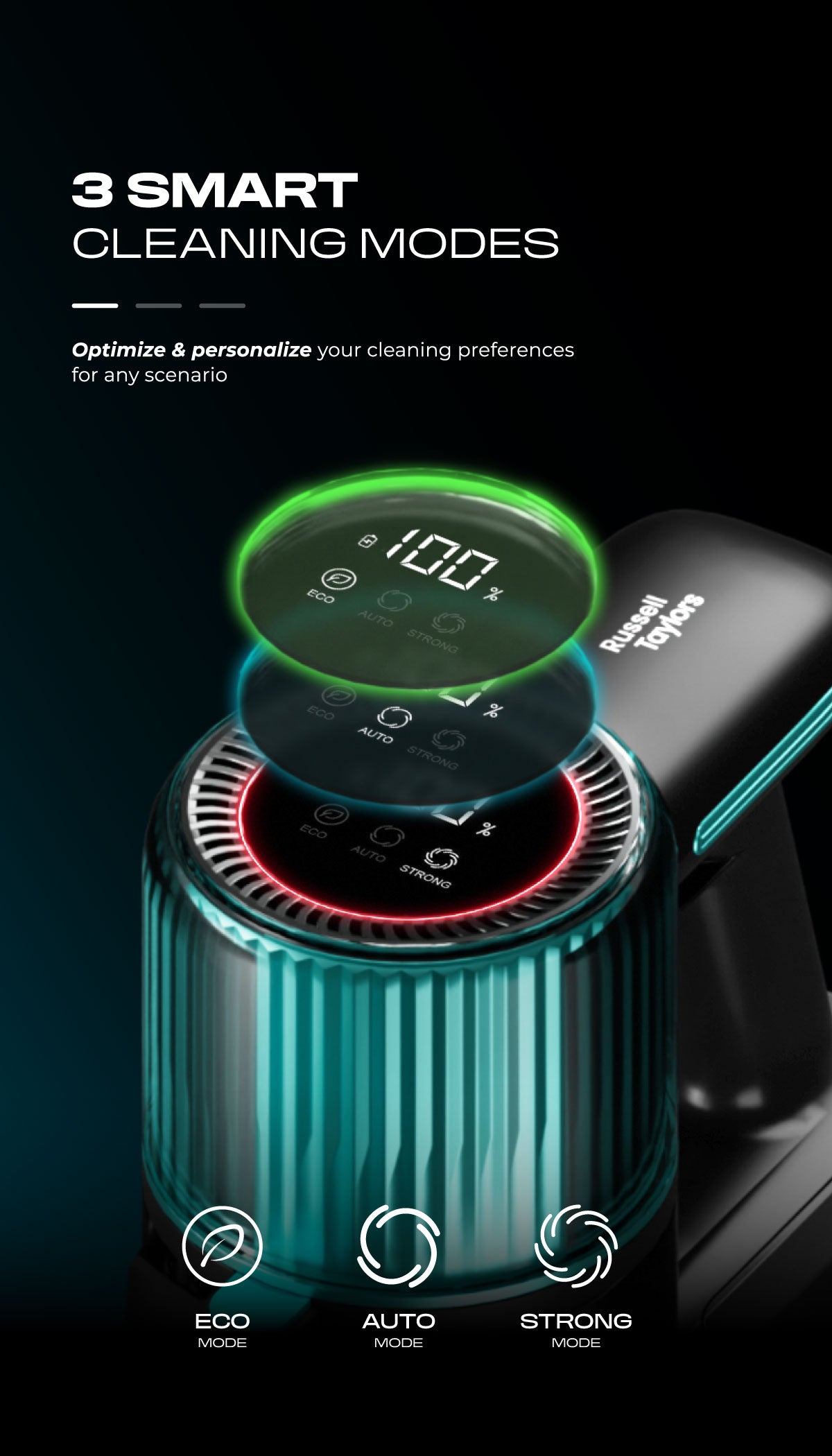 - AUTO CLEANING MODE now allows the advanced sensor to detect dirt quantity and adjust corresponding suction power required