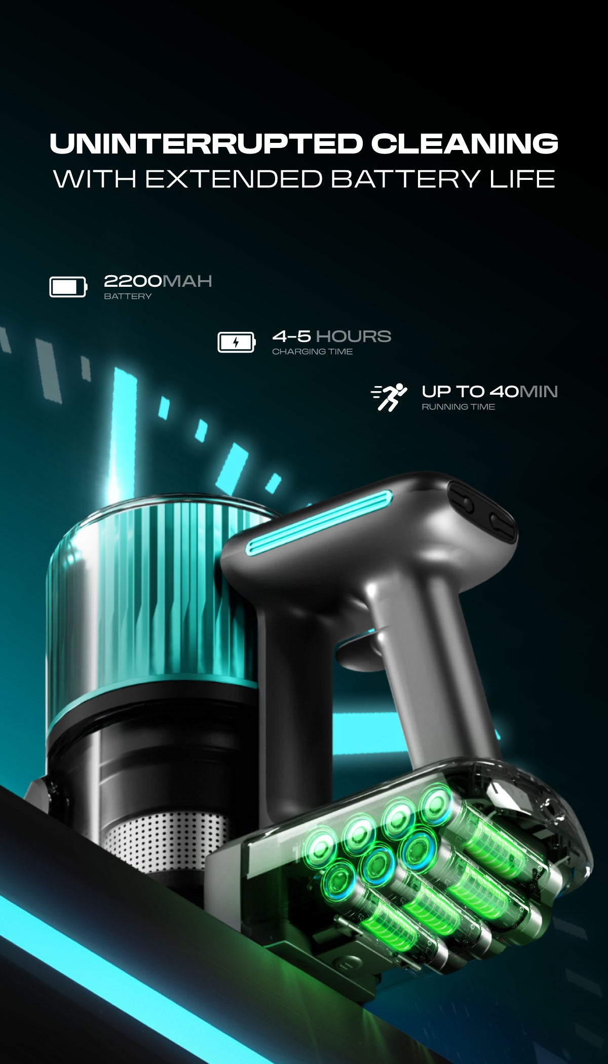 - EXTENDED BATTERY DURATION of up to 40 minutes on ECO mode