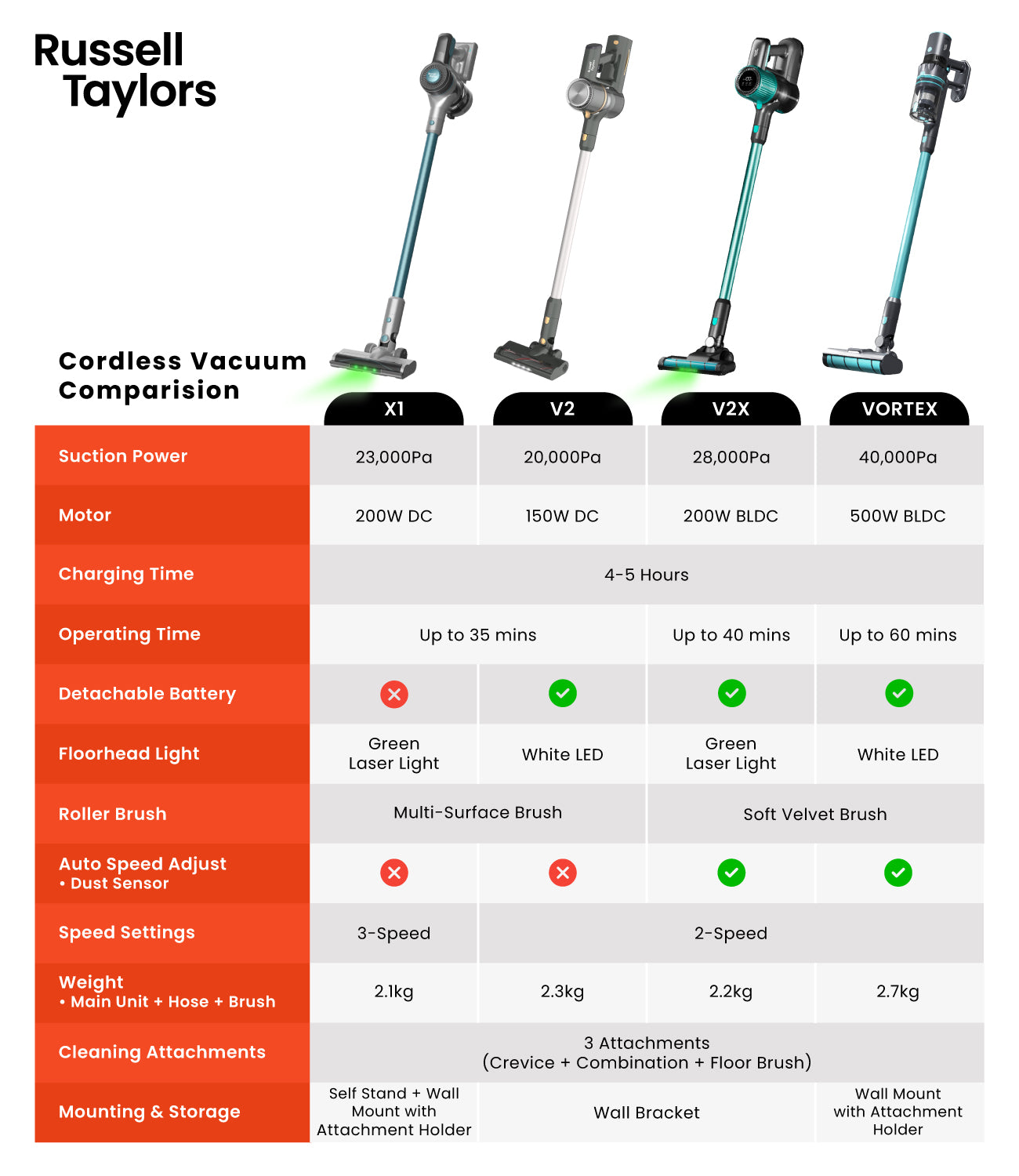Russell Taylors 28 kPa Cordless Vacuum Cleaner (200W BLDC) V2X