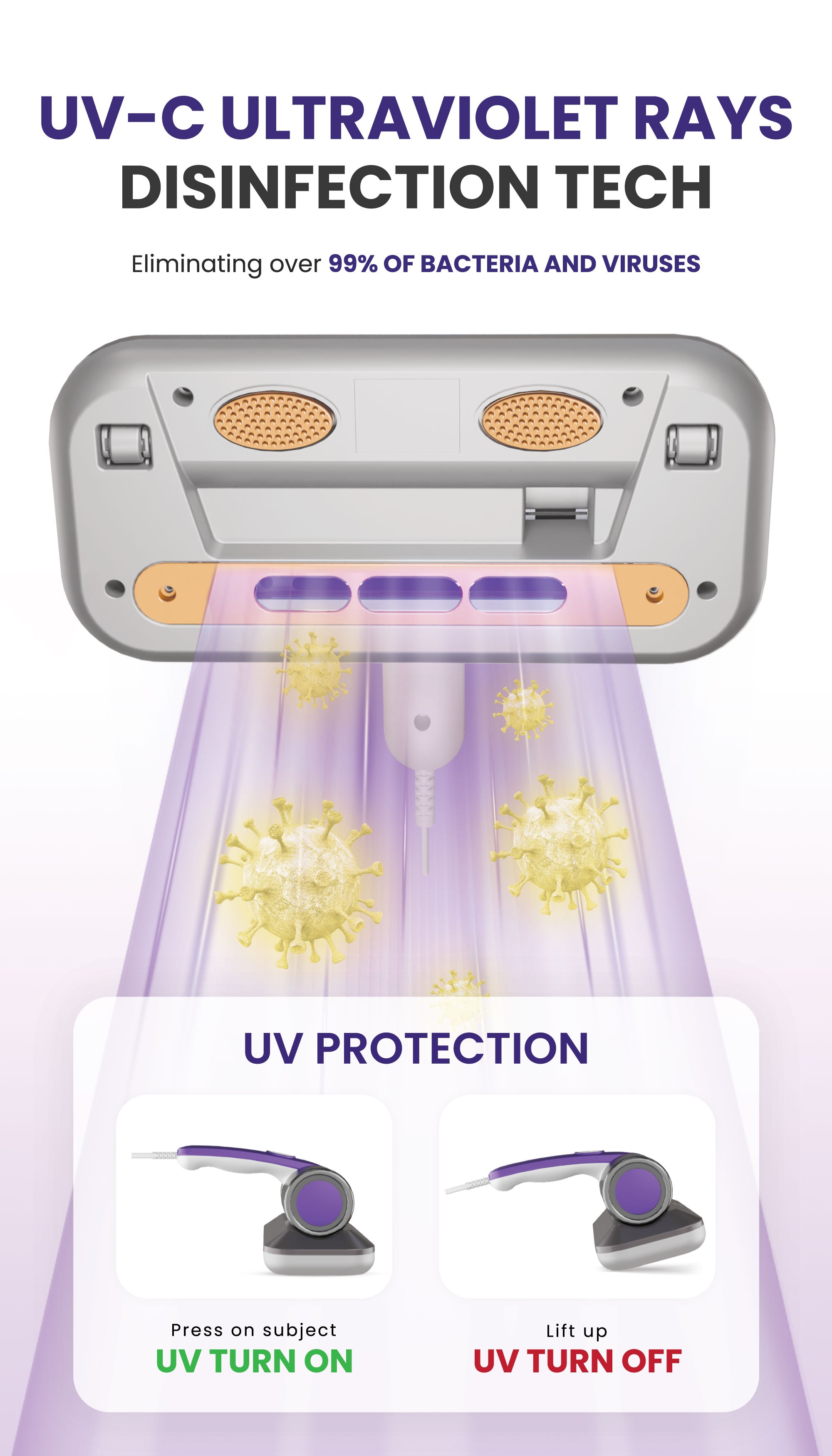 - UV-C DISINFECTION - Eliminates over 99% of bacteria and viruses - Mitigating allergies, skin irritation, nasal congestion, and eye itching