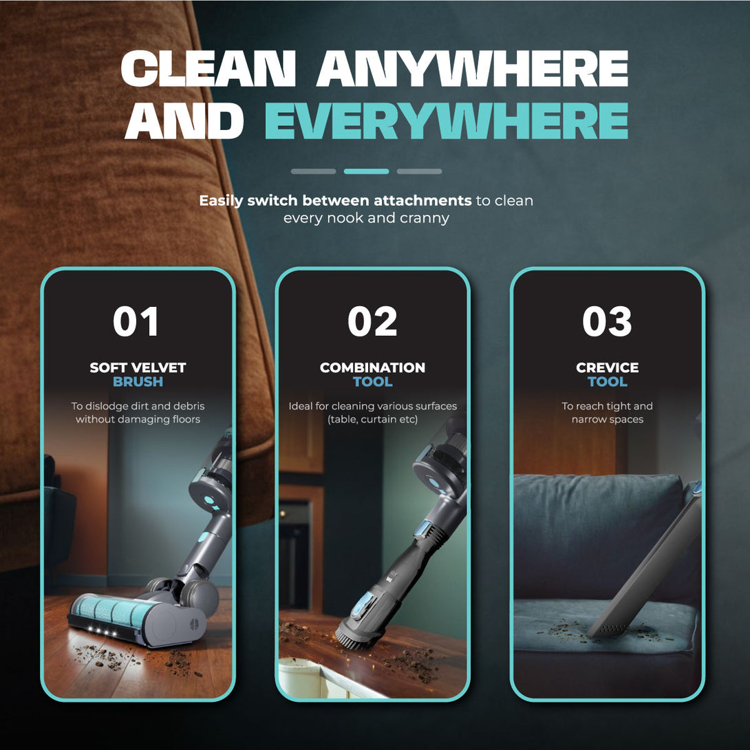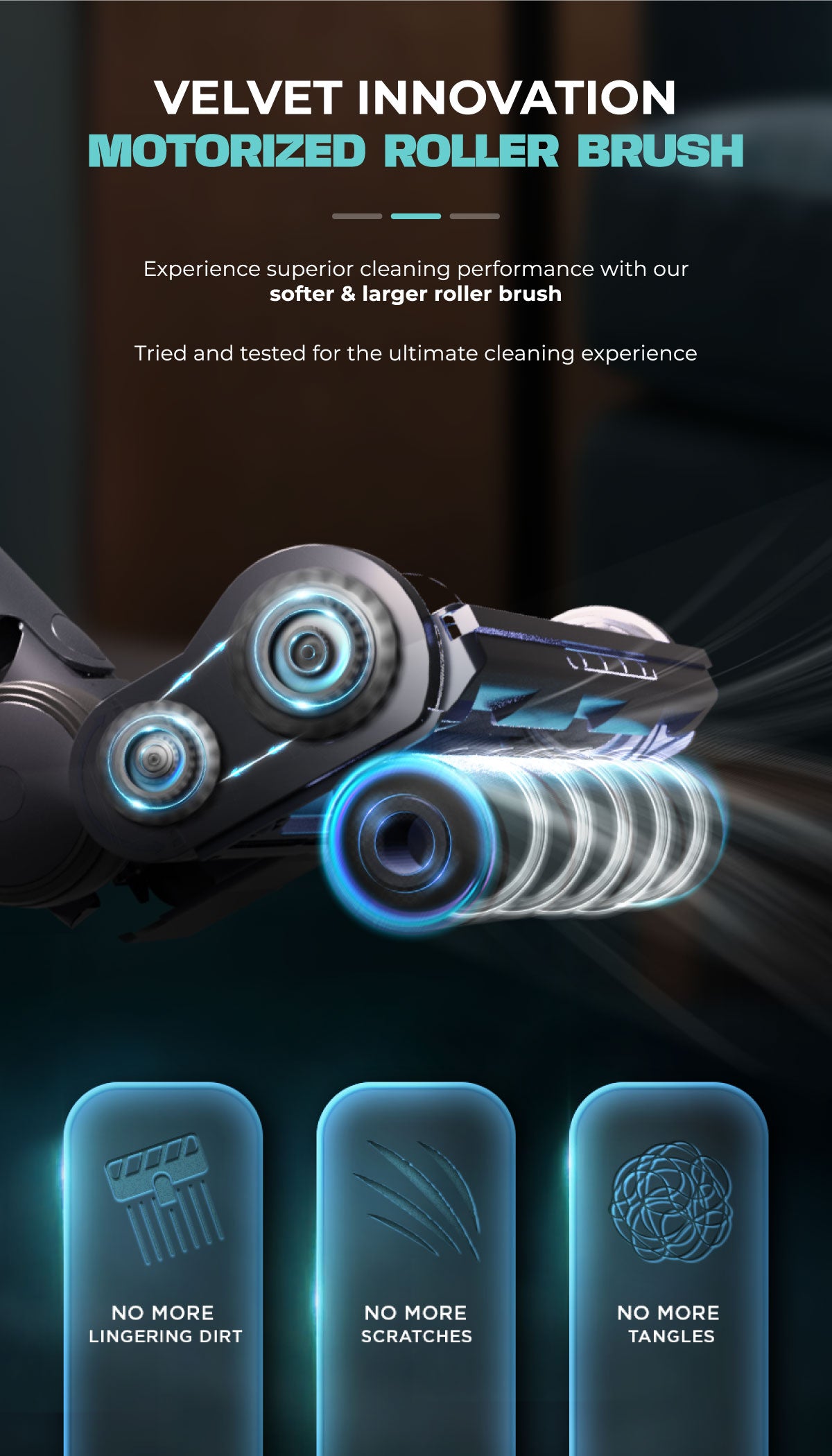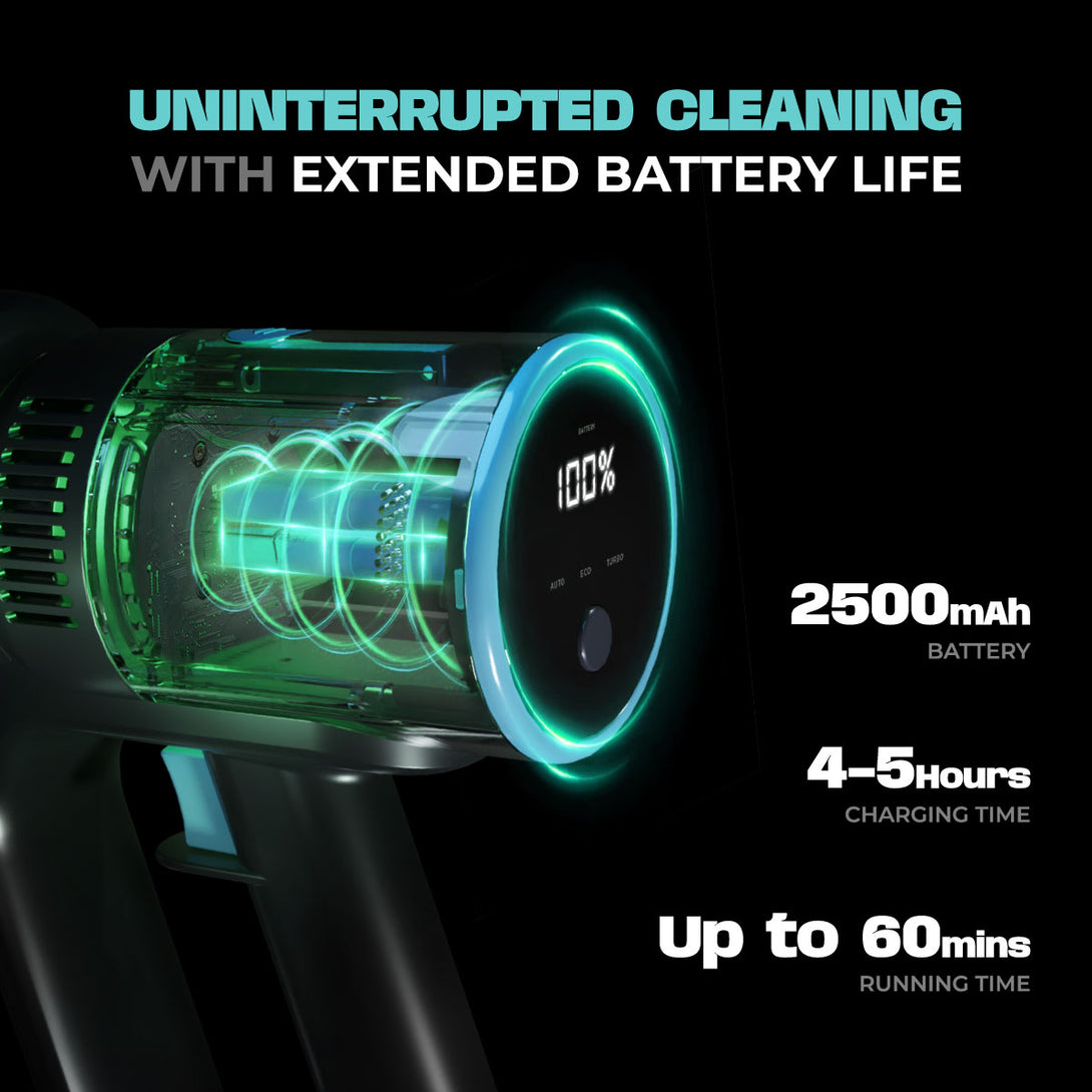 - POWERFUL 500W BLDC brushless motor providing 40kPa of suction power on MAX mode, effortlessly capturing debris, dust and any unwanted foreign material