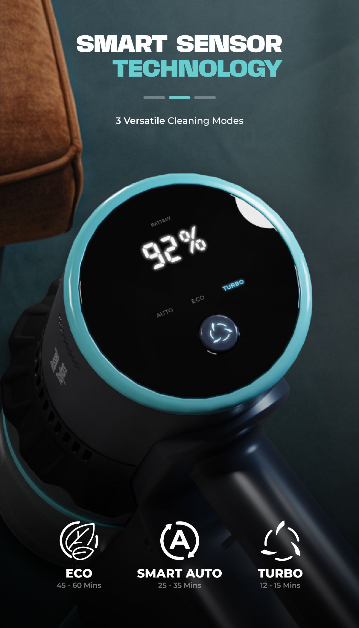 - AUTO CLEANING MODE now allows the advanced sensor to detect dirt quantity and adjust corresponding suction power required
