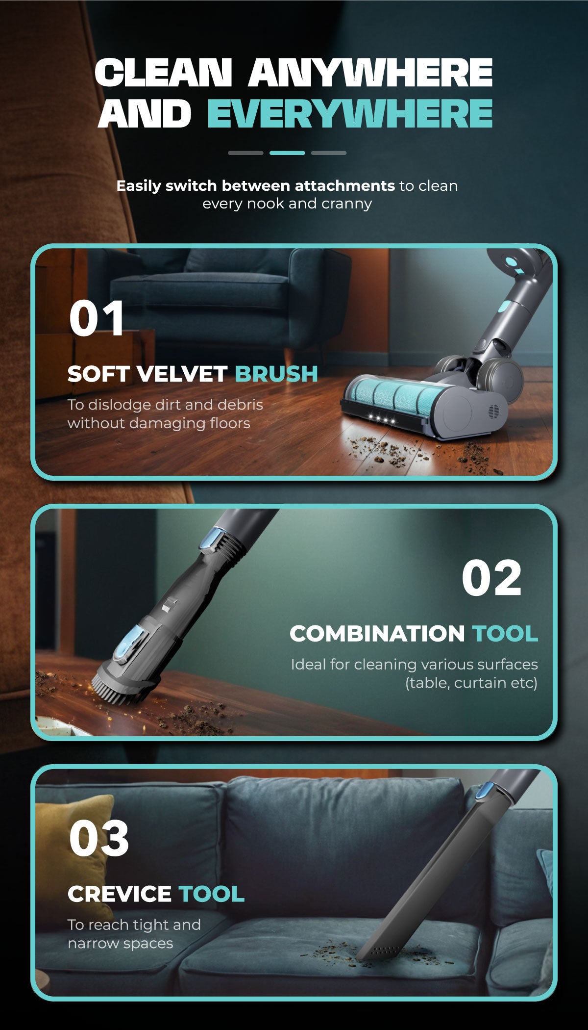 - LIGHTWEIGHT Design for convenient one handed usage with multiple accessories for all of your cleaning needs